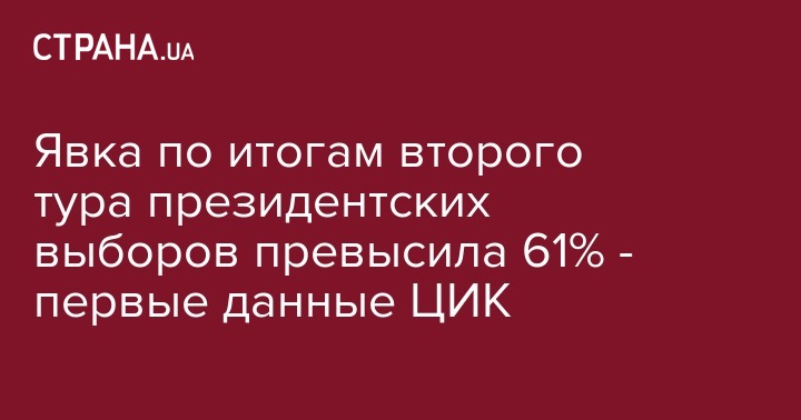 Между тем, по итогам первого тура президентских выборов 31 марта явка по Украине составила 62,8%. Самыми активными регионами оказались Волынская и Львовская области, а также Киев, явка там составила более 68%. Самым пассивным - Закарпатская область, где проголосовало 47% избирателей.