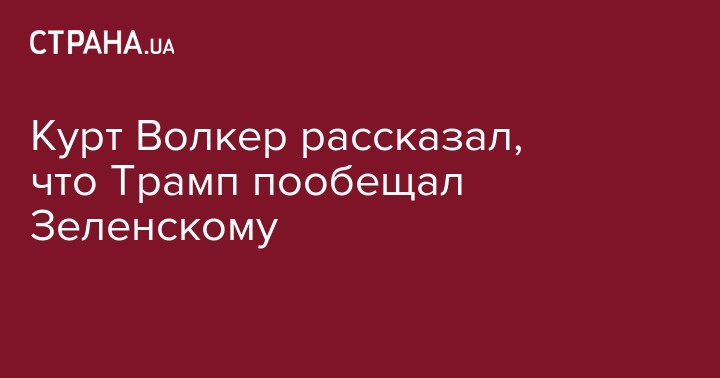 Курт Волкер рассказал, что Трамп пообещал Зеленскому