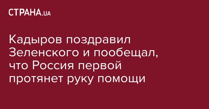 Кадыров поздравил Зеленского и пообещал, что Россия первой протянет руку помощи