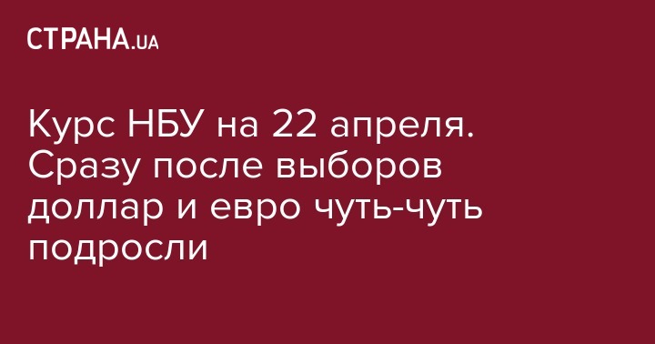 Утром, 22 апреля, после выборов президента Украины доллар и евро выросли в цене на 2 копейки. Национальный банк Украины (НБУ) определился на понедельник с курсом основных валют по отношению к гривне. Об этом сообщается на сайте регулятора.