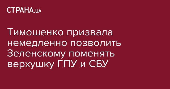 Тимошенко призвала немедленно позволить Зеленскому поменять верхушку ГПУ и СБУ