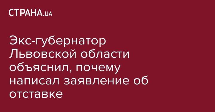 Экс-губернатор Львовской области объяснил, почему написал заявление об отставке