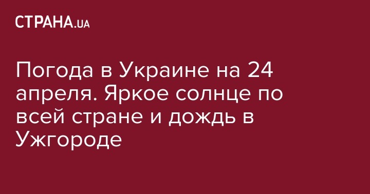В среду, 24 апреля, день в Украине будет очень теплым и солнечным. Даже в тех регионах, где еще ночью было морозно, столбики термометров поднимутся выше +20 градусов. Об этом свидетельствует прогноз, размещенный на сайте Укргидрометцентра