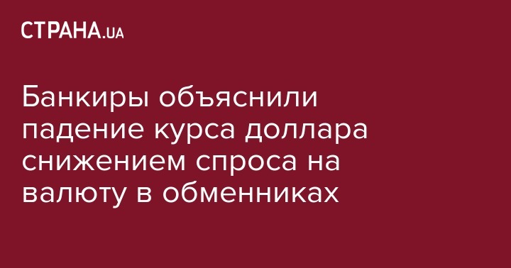 Банкиры объяснили падение курса доллара снижением спроса на валюту в обменниках