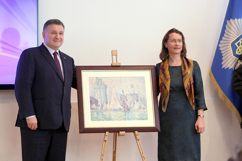 Во вторник, 23 апреля, министерство внутренних дел Украины вернуло Франции украденную картину художника Поля Синьяка "Порт Ла-Рошель", которую полицейские обнаружили при обыске у одного из подозреваемых в убийстве столичного ювелира Сергея Киселева. Об этом сообщает пресс-служба МВД.