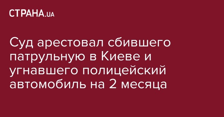 Шевченковский райсуд Киева избрал меру пресечения в виде содержания под стражей сроком на 2 месяца по ходатайству Киевской местной прокуратуры №10 для злоумышленника, который на Крещатике угнал полицейскую машину и сбил патрульную. Об этом сообщает столичная прокуратура в соцсети Facebook.