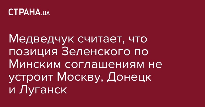 Медведчук считает, что позиция Зеленского по Минским соглашениям не устроит Москву, Донецк и Луганск