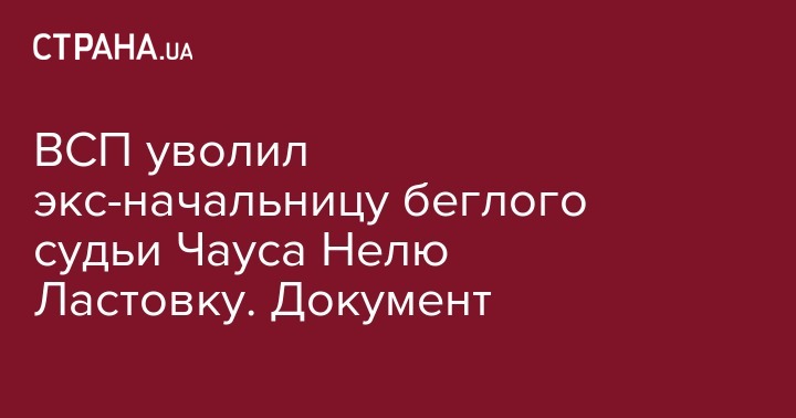 ВСП уволил экс-начальницу беглого судьи Чауса Нелю Ластовку. Документ