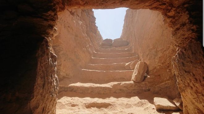 Чтобы попасть в усыпальницу, нужно спуститься по каменной лестнице, вход к которой был замурован каменной стеной - за счет этого захоронение осталось нетронутым на протяжении двух тысячелетий. Египетское министерство по делам древностей сообщает, что надписи внутри гробницы говорили об имени "основного" захороненного - Тийт. Вместе с главной мумией здесь было обнаружено 30 забальзамированных тел, в том числе детских.