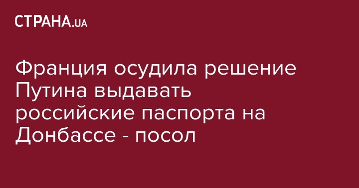 Франция осудила решение Путина выдавать российские паспорта на Донбассе - посол