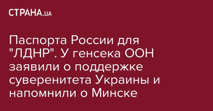 Генеральный секретарь ООН Антониу Гутерриш ожидает, что после решения Путина о начале выдаче паспортов жителям так называемых "ЛДНР", дух и буква Минских договоренностей будут соблюдены, и все вопросы будут решаться через конструктивный диалог в существующих форматах переговоров.