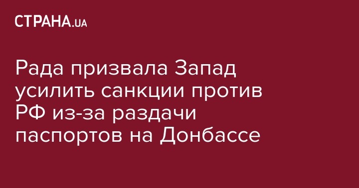 Рада призвала Запад усилить санкции против РФ из-за раздачи паспортов на Донбассе