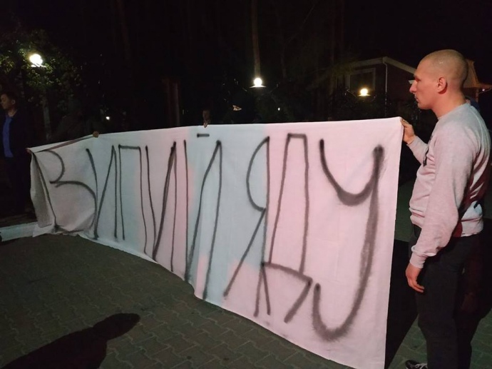 Во время акции представители инициативы бросали петарды за забор к дому, жгли файеры и кричали "позор Луценко", "Луценко выходи" и растиянули банер со словами "Вывпей яда".