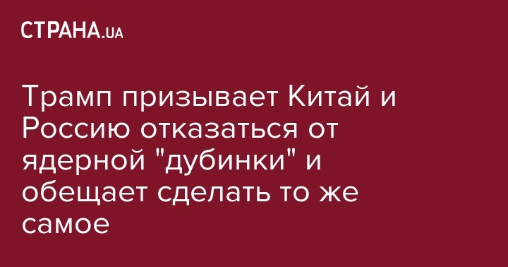 Президент Дональд Трамп призвал США, Росси. и Китай отказаться от ядерного оружия. Об этом он заявил в интервью американскому телеканалу Fox News.