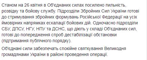 Войска приведены в полную боеготовность перед Пасхой - штаб ООС