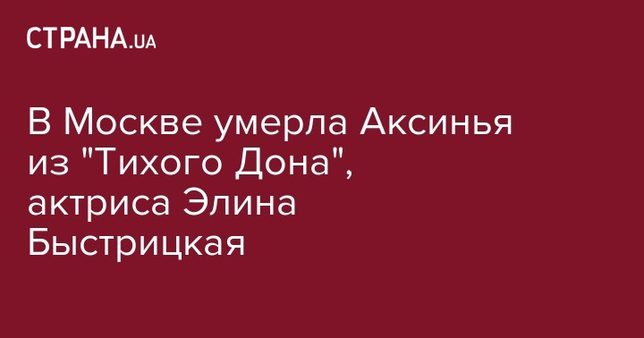 Сегодня, 26 апреля, в Москве скончалась народная артистка СССР, актриса театра и кино Элина Быстрицкая. Она умерла на 92-м году жизни. Об этом сообщили ТАСС в пресс-службе Малого театра, где Быстрицкая служила с 1958 года.