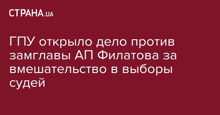В Генеральной прокуратуре Украины открыли уголовное производство по факту вмешательства замглавы АП Алексея Филатова в процесс отбора судей в Верховный и Высший антикоррупционный суды. Об этом идет речь в копии выдержки из Единого реестра досудебных расследований, передает УН.