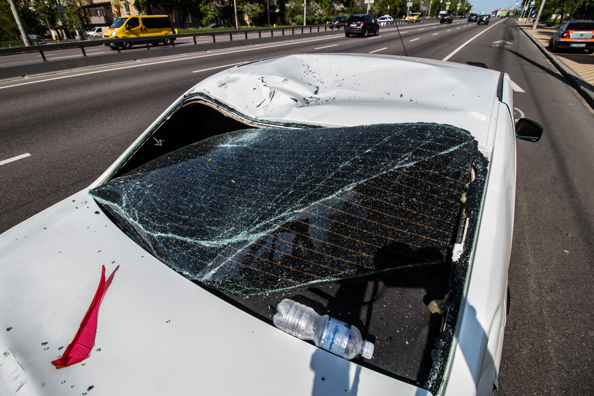 Также появились фото и видео с места ДТП с опрокидыванием авто на проспекте Победы в Киеве.
