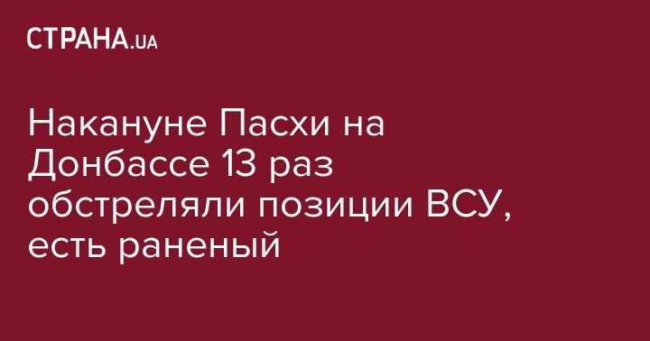 Накануне Пасхи на Донбассе 13 раз обстреляли позиции ВСУ, есть раненый