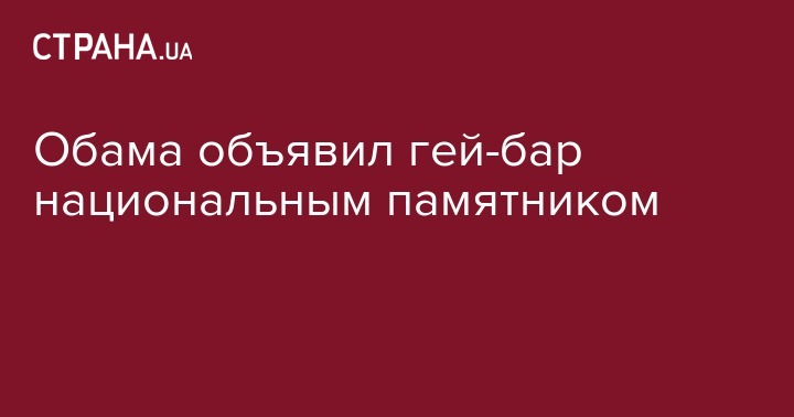 Президент США Барак Обама распорядился присвоить статус национального памятника бару Stonewall Inn, в котором более 40 лет назад начали собираться представители ЛГБТ-сообщества, несмотря на общественное неодобрение и рейды полиции за нарушение норм морали.