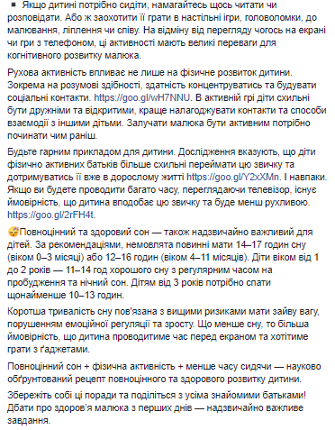 "Полноценный сон + физическая активность + меньше времени сидя - научно обоснованный рецепт полноценного и здорового развития ребенка", - резюмировала Супрун.