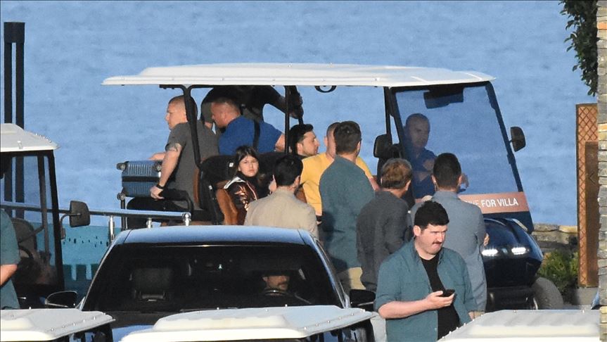 Как сообщает Anadolu Agency, Владимир Зеленский с семьей покинули пятизвездочный отель в квартале Гюверджинлик в понедельник, 29 апреля, утром. Его сопровождала личная охрана президента Эрдогана. На фото бодигарды одеты в серые штаны и голубые рубашки.