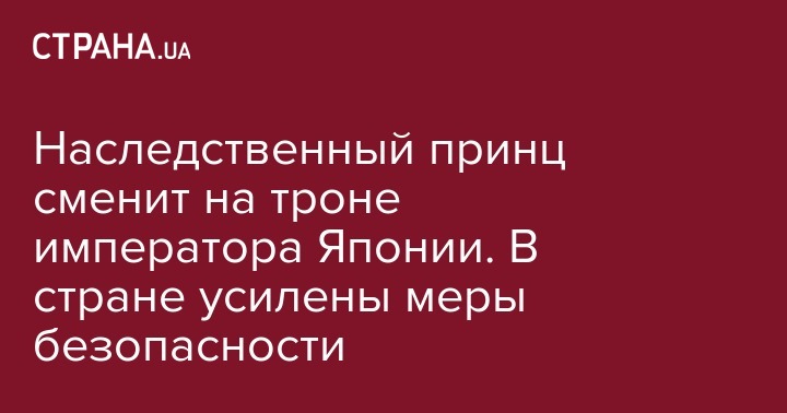 В четверг, 2 мая, в Японии наследный принц Нарухито сменит на троне своего отца - императора Акихито, в связи с этим в стране усилены меры безопасности. Об этом пишет "Интерфакс".