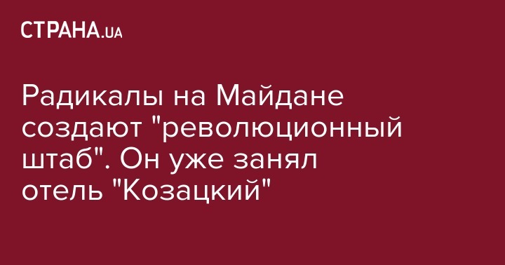 Между тем, как передает корреспондент "Страны", революционный штаб уже заседает в отеле "Козацкий". Люди в камуфляже заняли актовый акт гостиницы. Радикалы говорят, что будут ставить палаточный городок на Майдане и готовят некий "гражданский арест Порошенко". Подробности - на нашем видео:
