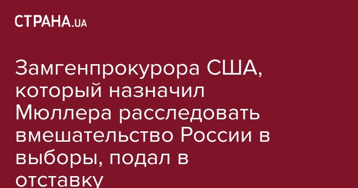 Замгенпрокурора США, который назначил Мюллера расследовать вмешательство России в выборы, подал в отставку