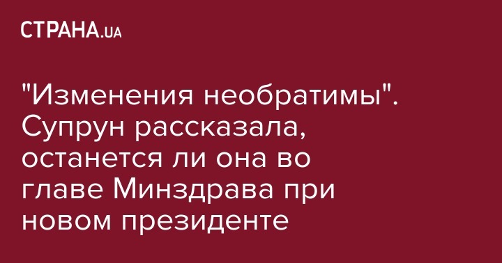 "Мы будем следить за тем, что происходит в течение следующих шести месяцев, и готовы сотрудничать с любой конструктивной политической силой, чтобы объяснять ход реформ и обеспечить отрасли необходимое финансирование", - сказала Супрун.