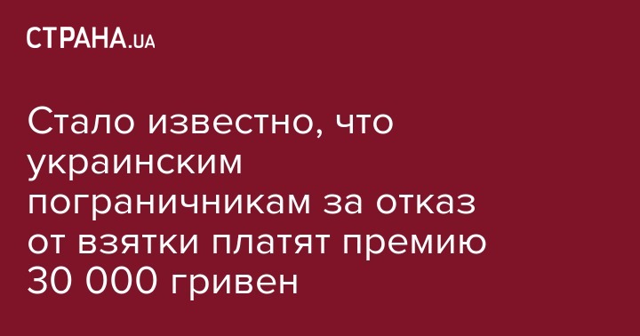 Стало известно, что украинским пограничникам за отказ от взятки платят премию 30 000 гривен