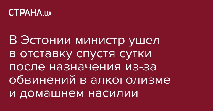 В Эстонии министр ушел в отставку спустя сутки после назначения из-за обвинений в алкоголизме и домашнем насилии