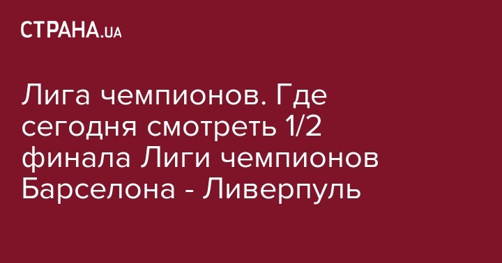 В среду, 1 мая, на стадионе "Камп Ноу" пройдет матч 1/2 финала Лиги чемпионов между "Барселоной" и "Ливерпулем".  Встреча начнется в 22.00 по киевскому времени.