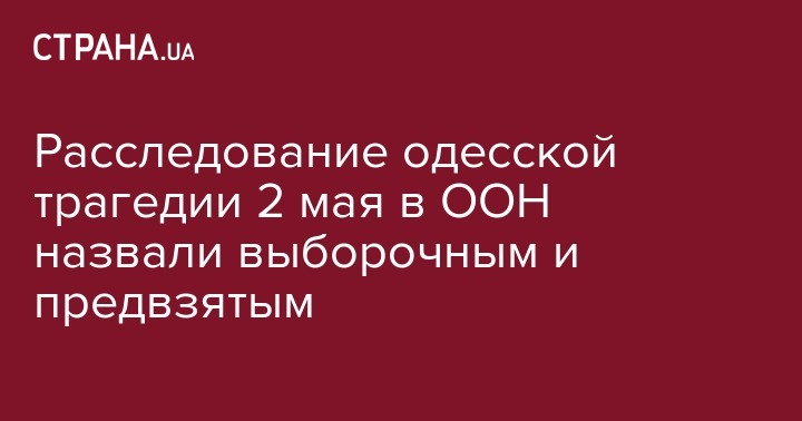 Текущее украинское расследование уголовных дел о трагедии в Одессе, произошедшей 2 мая 2014 года, в ООН назвали выборочным и предвзятым. В специальном отчете отметили, что во многих случаях даже официально не установлены подозреваемые.