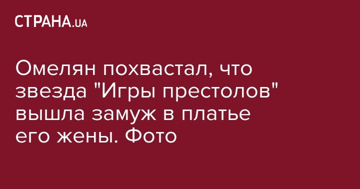 Министр инфраструктуры Украины Владимир Омелян рассказал о том, что одна из главных героинь сериала "Игра престолов" Софи Тернер, которая сыграла Сансу Старк, сегодня вышла замуж в платье от его жены - украинского дизайнера Светланы Бевзы.