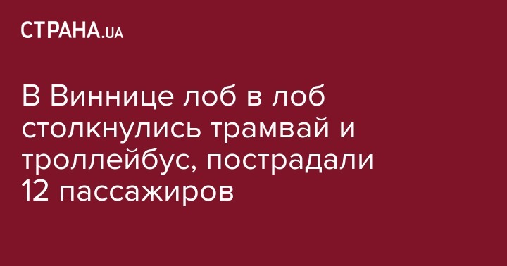 12 человек пострадали в результате лобового столкновения трамвая и троллейбуса, которое произошло в Виннице в четверг, 2 мая, на прощади Победы. Об этом сообщают "Вести"
