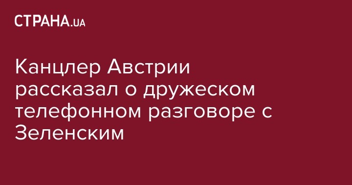 "Сегодня был дружеский телефонный разговор с новоизбранным президентом Украины Владимиром Зеленским. Украина остается важным партнером для Австрии и ЕС, мы будем продолжать активно поддерживать реформы и борьбу с коррупцией", - написал канцлер Австрии.