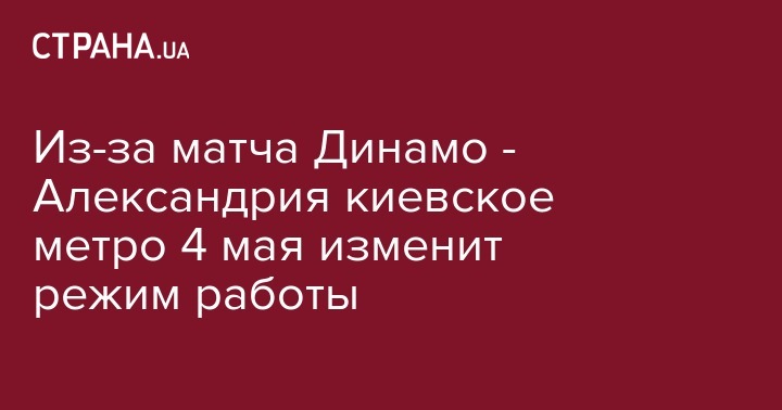 Из-за матча Динамо - Александрия киевское метро 4 мая изменит режим работы