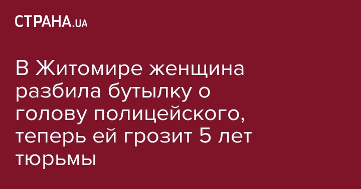В Житомире женщина разбила бутылку о голову полицейского, теперь ей грозит 5 лет тюрьмы