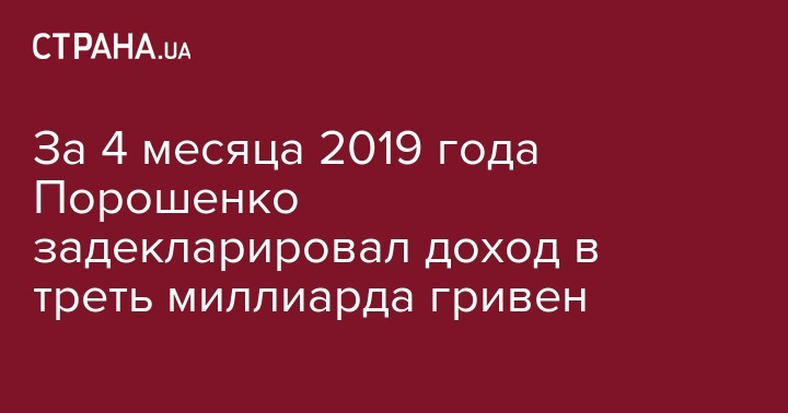 Всего с января президент задекларировал существенные изменения в имущественном состоянии почти на 1 млрд гривен, однако 576 млн гривен из этой суммы относились к доходу за 2018 год и отражены в годовой декларации о доходах Порошенко.