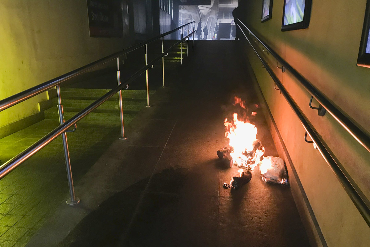 Как рассказали позже работники БЦ, посмотрев видео по камерам, поджигателем была женщина в красной куртке. Она сначала разлила что-то на вещи, а после - подожгла их. На месте работают правоохранители, они и будут выяснять, кто и зачем это сделал.