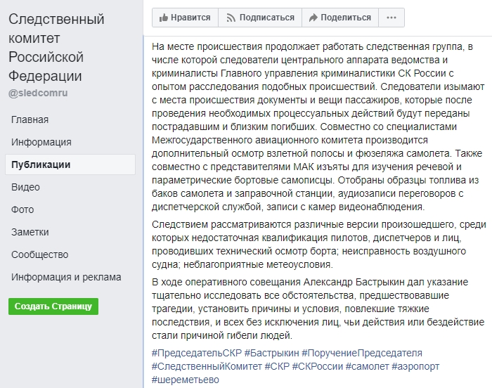Российские следователи рассматривают различные версии причин трагедии.  Следком РФ назвал те, что рассматриваются в первую очередь.