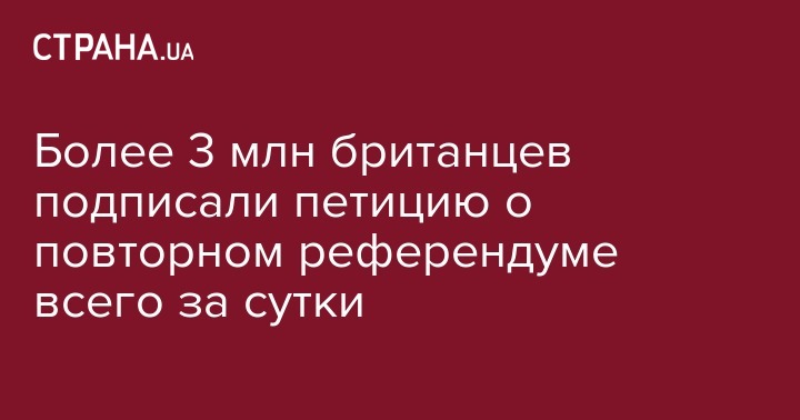 В субботу, 25 июня, "Страна" сообщала, что петиция за повторный референдум о выходе Британии из ЕС стремительно набрала более 2 млн подписей.