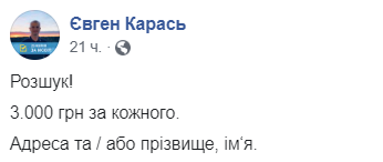 Одновременно глава С14 Евгений Карась предложил по 3000 гривень за "голову" каждого охранника, который атаковал их соратника. И данные на одного из них националисты уже опубликовали.