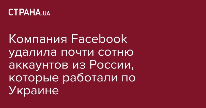 Компания Facebook удалила почти сотню аккаунтов из России, которые работали по Украине