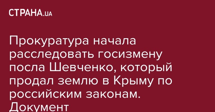 Прокуратура начала расследовать госизмену посла Шевченко, который продал землю в Крыму по российским законам. Документ