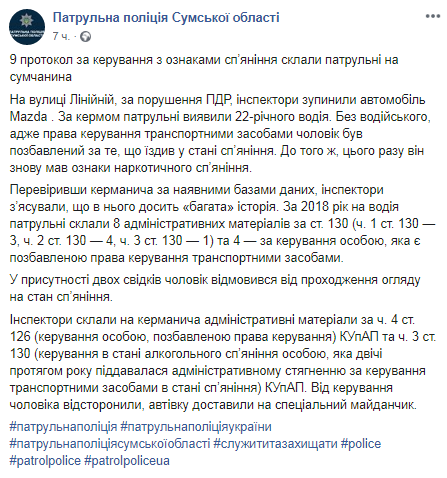 Скриншот, фото: Facebook/ Патрульна поліція Сумської області