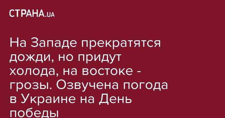 В День победы над нацизмом во Второй мировой войне, 9 мая, в западных регионах Украины наконец прекратятся дожди. Об этом сообщила синоптик Наталья Диденко на своей странице в Facebook.