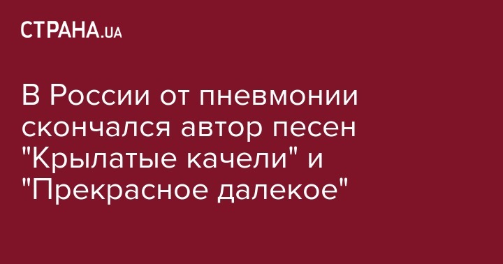 В России скончался известный композитор Евгений Крылатов - автор таких советских хитов, как "Крылатые качели", "Колыбельная медведицы", "Лесной олень", "Прекрасное далеко", "Три белых коня". О смерти 85-летнего композитора сообщила его дочь Мария Крылатова, передает ТАСС .