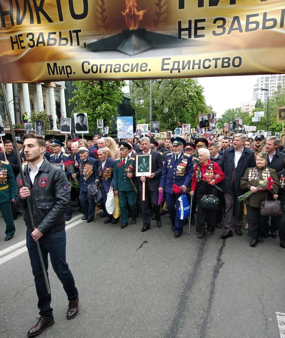 Во главе колонны, в которую вошли депутаты и ветераны был нардеп Юрий Бойко. Он поздравил украинцев с "праздником Великой Победы в Великой Отечественной войне".